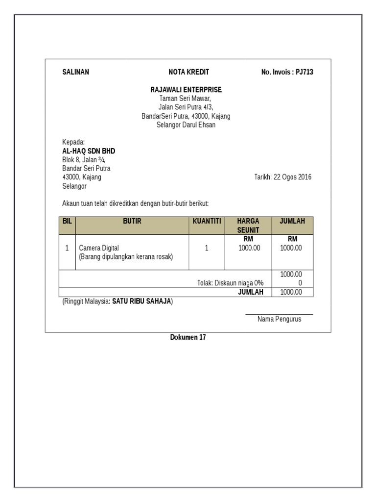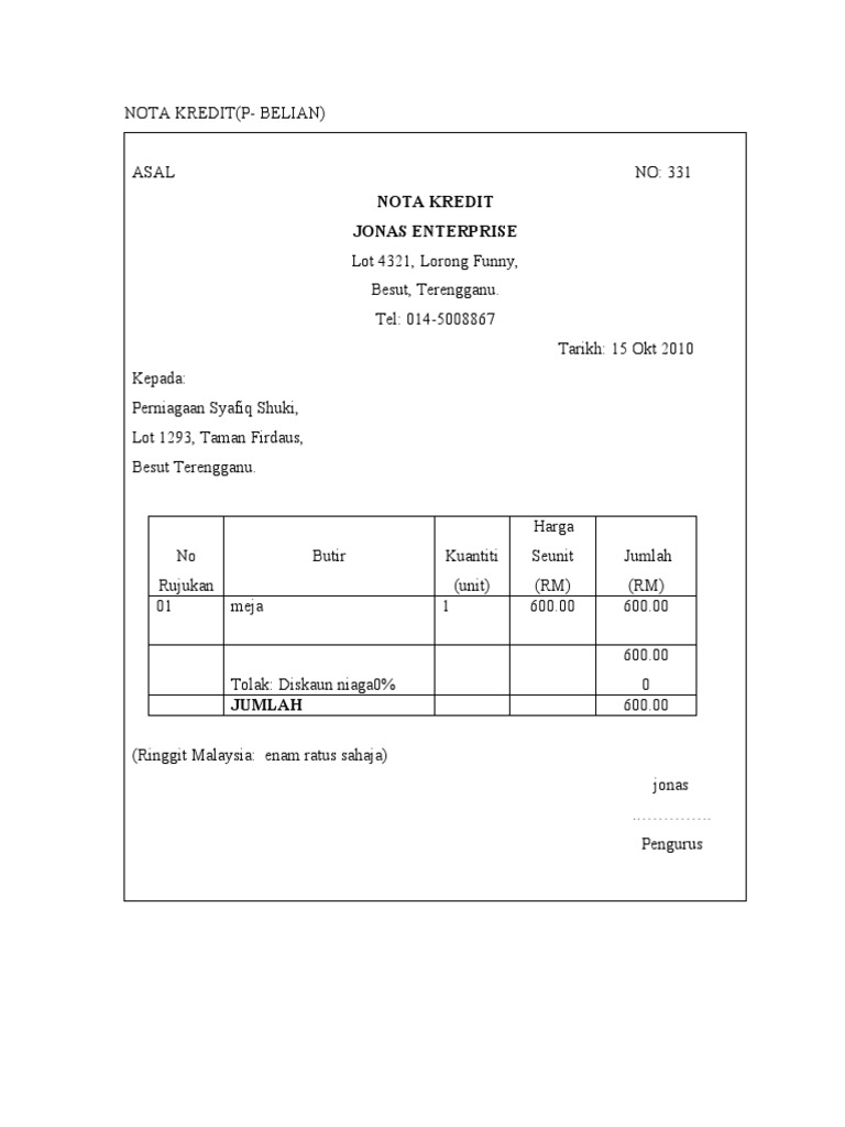 Nota Kredit Pengertian Contoh Tujuan Manfaat